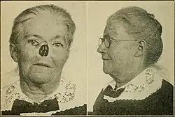 A nose prosthesis is a craniofacial prosthesis for someone who no longer has their original nose.[1] Nose prostheses are designed by anaplastologists who have their patients referred to them by ear, nose, and throat doctors and plastic surgeons.