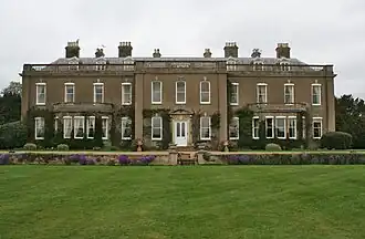 The house was built in the 1720s by Sir Arthur Haselrige on the site of the previous 15th-century manor house, of which no trace remains. The imposing two-storey south front has attics behind balustrades and eleven bays symmetrical around the central three advanced bays, which are defined by full-height Tuscan style pilasters. The central doorway carries the family crest on the keystone and a pediment. Substantial alterations and extensions were carried out in about 1835.