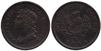 In addition to British coins, copper tokens were issued in 1823 and 1856 in denominations of ½d and 1d.