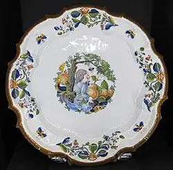 Nove Ware is a type of maiolica, or tin-glazed earthenware. It was made in Nove, Italy, in the 18th century, mainly in a factory founded by Giovanni Battista Antonibon in 1728. Near the end of the 18th century the factory became associated with another factory, in nearby Bassano, where majolica was produced in the 16th century. Nove ware was fashioned in the Rococo style common in the 18th century, with an emphasis on light, decorative works that conformed to a sense of stylistic elegance, as opposed to the ebullient style of the baroque.