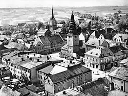 The area became part of the emerging Polish state in the 10th century, and following the Poland's fragmentation into smaller provincial duchies, it was part of the duchies of Silesia, Głogów and Żagań.[3] The town was first mentioned in a document of Henry III, Duke of Głogów from 1296, and was granted town rights before that date. In the 18th century, one of two main routes connecting Warsaw and Dresden ran through the town and Kings Augustus II the Strong and Augustus III of Poland traveled that route numerous times.[4]