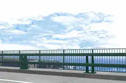 Noyo River Bridge served as the impetus for CalTrans approving an entirely new design specification for bridge railings, one that preserved the sightlines for motorists and passengers to a far greater degree than any approved for use in the state for over 50 years.[8] The initial design proposal had called for use of the standard freeway overpass configuration that had been in use since the 60s and employed solid concrete barriers on each side measuring 42 inches (110 cm) high that completely obstructed the view of the ocean and harbor for occupants in standard passenger cars.[9] This prompted a local outcry and attention from the California Coastal Commission who worked with CalTrans for over two years on alternatives that preserved sightlines without negatively impacting safety tests, ultimately resulting in an entirely new "scenic bridge" railing design termed ST-10 being approved for use state-wide and installed on the new Noyo Bridge.