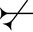 Also, line art drawings of cuneiform signs, from a document, or article have the possibility of showing the nu sign with either of the two types of the sign, showing either, (arrow) wedge strokes, or a wedge stroke (full triangle-type) stroke. The alternate wedge-triangle type would look similar to this: