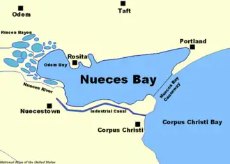 - ^ a b Leatherwood, Art (May 30, 2010). "Nueces Bay". Handbook of Texas Online. Texas State Historical Association. Retrieved 1 July 2010.