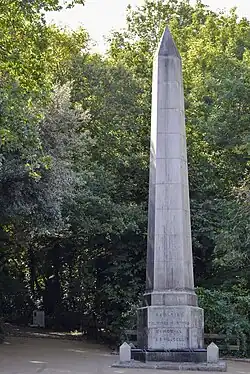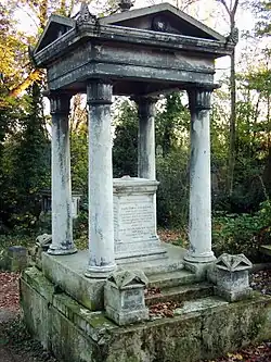 The lodges and monumental entrance were designed by James Bunstone Bunning. There is an obelisk, the "Scottish Political Martyrs Memorial", the second monument (the other is in Edinburgh) dedicated to the leaders of the Friends of the People Society, popularly called the Scottish Martyrs, including Thomas Muir, Maurice Margarot, and Thomas Fyshe Palmer, who were transported to Australia in 1794. It was erected by Radical MP Joseph Hume in 1851–52. It is immediately on the right on Dissenters Road, when entering through the North Gate.