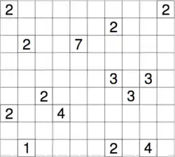 - ^ This paragraph mainly depends on "Nikoli complete works of interesting-puzzles(ニコリ オモロパズル大全集)." https://web.archive.org/web/20060707011243/http://www.nikoli.co.jp/storage/addition/omopadaizen/
