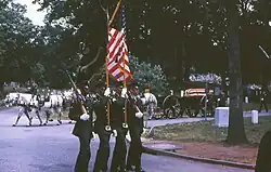 On 13 May 1864, William Henry Christman was buried at Arlington Cemetery,[19] close to what is now the northeast gate in Section 27,[20] even though Meigs did not formally authorize establishment of burials until the following month, on 15 June 1864.[21] Consistent with the practices of many cemeteries in the late 19th century, Arlington Cemetery maintained segregated burial practices. On 26 July 1948, however, U.S. president Harry S. Truman issued Executive Order 9981, which formally reversed this practice.[22]