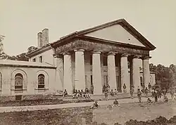 In 1818, Arlington House was completed. Custis initially intended the house to serve as a home and memorial to George Washington, his foster father, but Washington died on 14 December 1799. Custis' will granted a life inheritance of the house to his wife, allowing her to live at and run Arlington House for the rest of her life but prohibiting her from selling any portion of it.[6] Following his wife's death, Arlington House, then known as the Custis-Lee Mansion, was passed on to her eldest grandson, George Washington Custis Lee.[6][5]