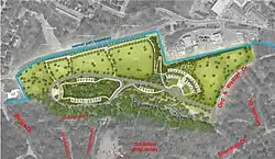 The project involved removing approximately 211 trees from a less than 2.63 acres (1.06 ha) area containing a portion of a 145-year-old forest that stood within the property boundaries of a historic district that a National Register of Historic Places nomination form for Arlington House had described in 1966.[76][78][79][80] About 491 trees would be removed from an area of trees that was approximately 105 years old.[76] Approximately 203 trees with ages of 50 to 145 years would be removed from a former picnic area.[76] At a public hearing on 11 July 2013, the National Capital Planning Commission approved the site and building plans for the Millennium Project.[81]