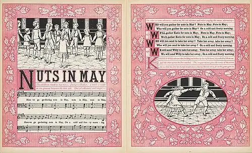"Nuts in May" is a singing game played by children with the aim of pairing a boy and girl from within two teams of participants. It was first recorded in the second half of the 19th century and has Roud Folk Song Index 6308.