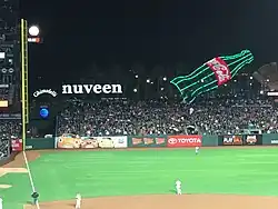 In 2017, the Nuveen Sign expanded to AT&T Park. The Nuveen Sign frames the newly renovated Fan Lot.[18]