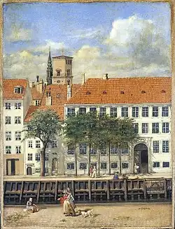 The other property (No. 3, now Nybrogade 4) did not continue all the way through the block to Snaregade, leaving No. 3 as an L-shaped property (cf. the map detail from Christian Gedde's 1757 map of Snaren's Quarter). The Snaregade portion of the property was from 1833 the site of a 15-bays-long half-timbered building (shortened with six bays in 1845, cf. below). The building in Nybrogade was constructed with two storeys some time between 1762 and 1784.[2][3]