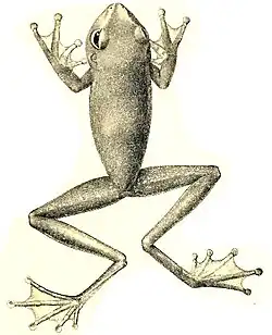 | Holotype of Nyctimystes montanus. Illustration from the original species description by Wilhelm Peters and Giacomo Doria (1878). | |