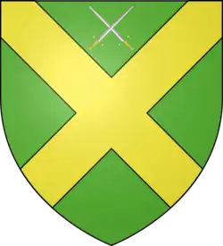 • ARMS – Vert a saltire or, in chief two swords in saltire, points upwards, the dexter surmounted of the sinister argent, pommels and hilts gold.