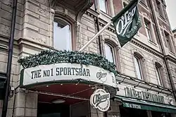 O'Learys was the first real American sports bar in Sweden. This type of restaurant can be found all over the United States, such as Boston, New York, Chicago and San Francisco. The restaurants often have green walls full of memorabilia of local sports stars, in the case of O'Learys sports stars from Boston.
