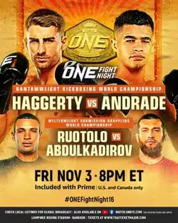 ONE Fight Night 16: Haggerty vs. Andrade was a combat sport event produced by ONE Championship that took place on November 4, 2023, at Lumpinee Boxing Stadium in Bangkok, Thailand.[1][2]