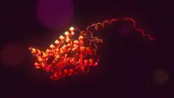 OPN1LW is a gene on the X chromosome that encodes for long wave sensitive (LWS) opsin, or red cone photopigment.[5] The OPN1LW gene provides instructions for making an opsin pigment that is more sensitive to light in the yellow/orange part of the visible spectrum (long-wavelength light).[6] The gene contains 6 exons with variability that induces shifts in the spectral range.[7] OPN1LW is subject to homologous recombination with OPN1MW, as the two have very similar sequences.[7] These recombinations can lead to various vision problems, such as red-green colourblindness and blue monochromacy.[8] The protein encoded is a G-protein coupled receptor with embedded 11-cis-retinal, whose light excitation causes a cis-trans conformational change that begins the process of chemical signalling to the brain.[9]