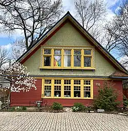 Outgrowing Krafft’s home, the League temporarily operated out of Frank Lloyd Wright's former studio and later the 19th Century Women’s Club. In 1937, OPAL purchased its permanent home, a 1902 carriage house at 720 Chicago Avenue, designed by architect and League member Eben Ezra Roberts. Previously, the building served as a school and dance studio for modern dance pioneer Doris Humphrey.[3] Located in Oak Park’s Historic District, it sits near landmarks like the Frank Lloyd Wright Home and Studio and Ernest Hemingway’s birthplace.[4]