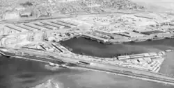 Construction of the base commenced in 1941 as a part of the expanding San Francisco Port of Embarkation which was headquartered at Fort Mason on the San Francisco waterfront. Initially named the Oakland Sub-Port of the San Francisco Port of Embarkation, the base was renamed the Oakland Army Base in 1944. The installation moved in excess of 8.5 million tons of cargo during World War II, and 7.2 million tons of cargo passed through the terminal during the Korean War.[1]