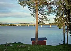 Obbola bridge (Swedish: Obbolabron) is a road bridge on the E12 over Österfjärden that connects Obbola and Holmsund in Sweden. The bridge was built during the winter of 1988 when an artificial freezing process was used to create a stable work platform for the heavy pile driving equipment.[1]