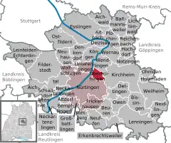 It is located 20 km southeast of Stuttgart on the railway line between Stuttgart and Tübingen.