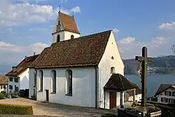 In the European Middle Ages, the two settlements named Unterbollingen and Oberbollingen are mentioned as part of the later Herrschaft Rapperswil of the Counts of Rapperswil. The earliest document sealed at the Rapperswil Castle was related to the donation of the church of Unterbollingen to the Rüti Abbey, and also mentions among others a civitas of the town of Rapperswil as witnesses of Count Rudolf von Rapperswil in 1229.[3] On the peninsula at Oberbollingen, a St. Nicholas Chapel is mentioned, where around 1229 a small Cistercian nunnery, later Premonstratensian convent associated with the Rüti Abbey was established by the Counts of Rapperswil; in 1267 it was united with the nearby Mariazell Wurmsbach Abbey. In 1519 a new church in honor of St. Pancras was inaugurated in Unterbollingen. After the Reformation in Zürich the church was acquired by the city of Rapperswil to be united with the Heiliggeistspital, but since 1871 it is a parish church for its own.