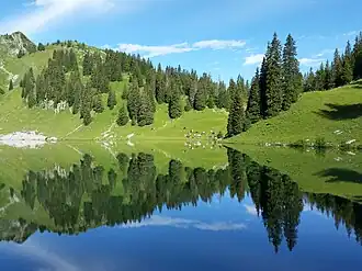 Oberstockensee is a small lake in the Canton of Bern, Switzerland. Its surface area is 11.8 ha (29 acres). The lake is located above the village of Erlenbach im Simmental, below Stockhorn. During the 19th and 20th centuries, the "Oberstockensee" was often called the Vorderstockensee and/or Spetbaerglisee. Local residents still refer to it as the "Spetbaerglisee." Vorderstocken and Spetbaergli are the two alpine meadows that are on opposite sides of the lake.