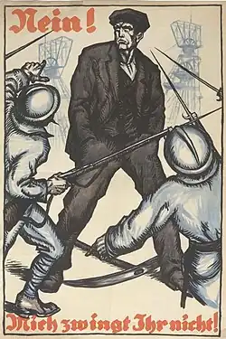 As a consequence of Germany's failure to make timber deliveries in December 1922, the Reparation Commission declared Germany in default.[9] Particularly galling to the French was that the timber quota the Germans defaulted on was based on an assessment of capacity the Germans made themselves and subsequently lowered. The Allies believed that the government of Chancellor Wilhelm Cuno, who had succeeded Joseph Wirth in November 1922, had defaulted on the timber deliveries deliberately as a way of testing the will of the Allies to enforce the treaty.[10] Raymond Poincaré, the French prime minister, hoped for joint Anglo-French economic sanctions against Germany but opposed military action. By December 1922, however, he saw coal for French steel production and payments in money as laid out in the Treaty of Versailles draining away. French and Belgian delegates on the Reparation Commission urged occupying the Ruhr as a way of forcing Germany to pay more, while the British delegate favoured lowering the payments.[11] The conflict was brought to a head by a German default on coal deliveries in early January 1923, which was the thirty-fourth coal default in the previous thirty-six months.[12] After much deliberation, Poincaré decided to occupy the Ruhr on 11 January 1923 in order to exact the reparations. Poincaré knew that it would cost France as well as Germany and told reporters on 29 January 1923:[13]