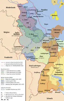 - ^ a b c d Fischer, Conan (14 October 2016). Daniel, Ute; Gatrell, Peter; Janz, Oliver; Jones, Heather; Keene, Jennifer; Kramer, Alan; Nasson, Bill (eds.). "Ruhr Occupation". 1914–1918-online. International Encyclopedia of the First World War. Freie Universität Berlin. Retrieved 20 June 2024.