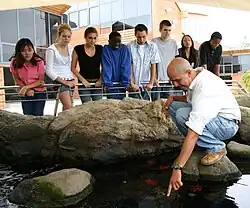 Moored at the institute is its 70-foot marine science research vessel, the R/V Sea Explorer, used for student programs and to take visitors on trips to see marine wildlife, including whale watching on weekends. The institute also partners with the Lazy-W Ranch, a camp located in the Cleveland National Forest where students study the ecosystem and California history. It provides outreach programs via a mobile laboratory provided by the "Ocean in Motion" van and distance learning via video conference.[3]