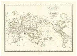 The geographer Conrad Malte-Brun coined the French expression Terres océaniques ('Oceanic lands') c. 1804.[29] In 1814 another French cartographer, Adrien-Hubert Brué, coined from this expression the shorter Océanie,[30] which derives from the Latin word oceanus, and this from the Greek word ὠκεανός (ōkeanós), 'ocean'. The term Oceania is used because, unlike the other continental groupings, it is the ocean that links the parts of the region together.[31] John Eperjesi's 2005 book The Imperialist Imaginary says that Since the mid-19th century, Western cartographers have used the term Oceania to organize and classify the Pacific region.[32]