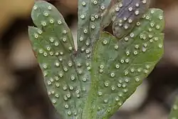 | Ochropsora anemones, formerly Ochropsora ariae, on leaf of Anemone nemorosa | |