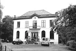 Ocket Castle (Dutch: Kasteel Ocket) is a house, on the site of a castle, in Heusden, Destelbergen, East Flanders, Belgium. It probably originated on the former fief of Grooten Hoek that lasted until the 15th century. The castle was depicted on a 1725 map by PJ Benthuys as a building with a moat near the Scheldt and is mentioned in 1767 as a "partije genaemt den grieten hoeck met de mote ende huys van playsance".[1] The present Neoclassical building dates largely from the 18th and 19th centuries but contains a dining room on the east side that in the 17th/18th century was the core of the structure, as was established among other things from the beams and the Rococo stucco decorations.[1]
