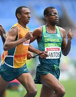 Odair Santos (born 17 May 1981) is a visually impaired Paralympian athlete from Brazil competing mainly in T11 classification middle and long-distance events. A veteran of four Paralympics, Santos has won nine Paralympic medals, including five silver medals.[1] Santos is also a four time IPC World champion at the 1,500 metres event, being unbeaten from 2006 to 2015.