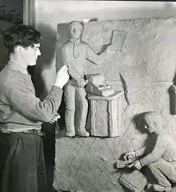 In 1941, he was arrested in Trondheim and was imprisoned at the Falstad concentration camp outside Levanger. In 1942 he escaped to Sweden until the end of World War II. He performed several works in exile including apostle figures for the altarpiece in Malmberget Church (1944).[2]