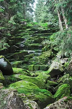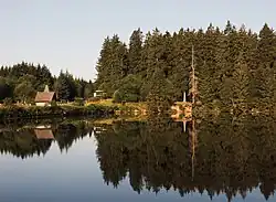 The Oderteich is an historic reservoir about seven kilometres northeast of Sankt Andreasberg in the Upper Harz in central Germany. It was built by miners from St. Andreasberg in the years 1715 to 1722 and, today, is an important component of the water supply network known as the Upper Harz Water Regale (Oberharzer Wasserregal). Moreover, for 170 years, from the time it was completed to the end of the 19th century, the Oderteich had the largest dam in Germany.[1][2] The dam lies at a height of 725 m above NN by the B 242 federal highway, about a kilometre west of its intersection with the B 4.