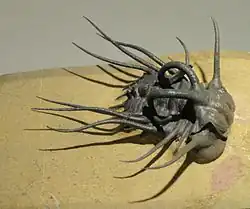 Odontopleuridae is a family of odontopleurid trilobites found in marine strata throughout the world. Odontopleurids of Odontopleuridae first appear in Late Cambrian-aged marine strata, and the last genera perish by the end of the Frasnian stage during the Late Devonian. The members of Odontopleuridae are famous for their spinose appearance, having long, often numerous spines along the edges of their exoskeletons, and derived from ends of segments or tubercle ornaments.