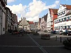 The marketplace forms the centre of Oettingen, and the weekly farmers' market takes place here on Fridays. Worth noting is the architectural layout: on the east side, the gables are Baroque, and on the west side, they are half-timbered.