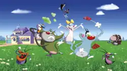 Oggy and the Cockroaches (French: Oggy et les Cafards) is a French animated television series created by Jean-Yves Raimbaud and produced by Gaumont Multimedia for seasons 1–2 and Xilam Animation for seasons 3–7. It chronicles the exploits and adventures of Oggy, a light blue cat with a red nose and white gloves whose life is constantly interrupted by three cockroaches – Joey, Marky, and Dee Dee respectively – who regularly cause mischief at his home. The show employs silent comedy, with characters not speaking or instead use unintelligible vocalizations and gestures.