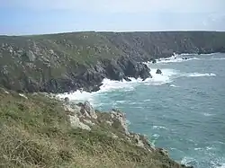Ogo-dour Cove is a small cove located at grid reference SW 667 157.[1] Its name comes from the Cornish words 'ogo' meaning a 'cave' and 'dour' meaning 'water' its name is literally "Cave-Water Cove" in Cornish. It is at the northern end of Predannack Downs on the west side of the Lizard peninsula in Cornwall.[2][3]
