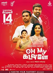 Oh My Kadavule (transl. Oh My God, (हे मेरे भगवान!) ) is a 2020 Indian Tamil, Kannada, Telugu, Hindi language romantic fantasy comedy film written and directed by Ashwath Marimuthu in his directorial debut. The film stars Ashok Selvan, Ritika Singh and Vani Bhojan as the leads while Shah Ra and M. S. Bhaskar play supporting roles. Vijay Sethupathi and Ramesh Thilak make extended cameo appearances. The film had its theatrical release on 14 February 2020, Valentine's Day. Oh My Kadavule was selected for official screening at International Indian Film Festival in Toronto, held in August 2020.[2] Critics lauded the movie for its performances (mainly of Sethupathi, Singh, and Selvan), story, and humor. It was dubbed in Hindi, remade in Kannada as Lucky Man (2022) and in Telugu as Ori Devuda (2022).