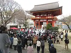 The Buddhist temple of Takisan-ji (7th century) includes several Important Cultural Properties of Japan. The main hall is from the Kamakura period and is the location of a fire festival held each February on the closest Saturday to the lunar calendar New Year. The distinctive Sanmon gate and the main image are designated as important cultural properties. Adjoining the temple is Takisan Tōshō-gū, a Shinto Shrine built in 1646 by Tokugawa Iemitsu.
