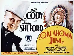 Oklahoma Jim is a 1931 American Western film directed by Harry L. Fraser and written by George Arthur Durlam and Harry L. Fraser. The film stars Bill Cody, Andy Shuford, Marion Burns, William Desmond, Franklyn Farnum and John Elliott. The film was released on October 10, 1931, by Monogram Pictures.[1][2][3]