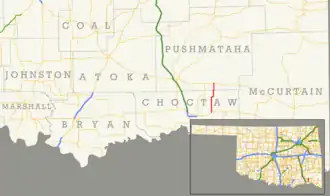- ^ a b c Oklahoma Department of Transportation (2010–2011). Control Section Maps: Choctaw County (PDF) (Map) (2010–2011 ed.). Scale not given. Oklahoma City: Oklahoma Department of Transportation. Retrieved November 12, 2012.