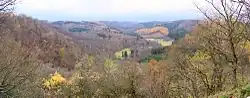 About 1.8 kilometres (1.1 mi) east-northeast lies New Falkenstein Castle, a preserved medieval ridgetop castle.