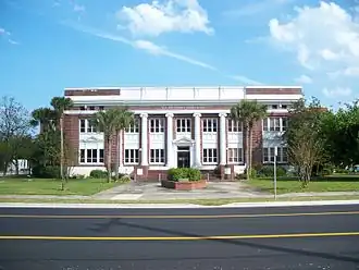 The Old Flagler County Courthouse is an historic two-story redbrick courthouse building located at 200 East Moody Boulevard in Bunnell, Florida. Designed by Wilbur Talley in the Classical Revival style, it was built in 1924 by O. P. Woodcock to serve Flagler County which had been created in 1917. It was the county's second courthouse building and its first purpose-built one. In 1985 a three-story addition was attached to its rear. In January 2007 the 1924 building was closed due to safety problems with its roof. By January 2008, the 1985 addition had also been vacated due to structural problems. Courthouse operations are now housed at the Kim C. Hammond Justice Center 1769 East Moody Boulevard. [1] [2] [3] [4]