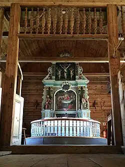 Old Olden Church (Norwegian: Olden gamle kyrkje) is a former parish church of the Church of Norway in Stryn Municipality in Vestland county, Norway. It is located in the village of Olden at the north end of the Oldedalen valley. Until 1934, the church was the parish church for the Olden parish which is part of the Nordfjord prosti (deanery) in the Diocese of Bjørgvin. Since 1934, the church has been used for special occasions and functions mostly as a museum. The white, wooden church was built in a cruciform design in 1759 using plans drawn up by an unknown architect. The church is the only existing cruciform church in Nordfjord. The church seats about 250 people.[1][2][3][4]