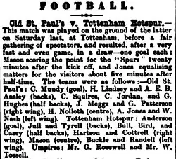 Tottenham Hotspur 1–1 Old St Paul's, East London Observer, 6 November 1886