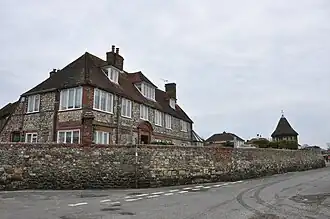 The current structure consists of several properties overlooking Chichester Harbour, including a couple of workman's cottages and an early town hall, which individually date back to 1694.[2][3][4] The properties were built in rubble masonry with red brick dressings.[1] The old town hall was used as a local meeting place,[5] possibly by the feudal representatives of the lords of the manor, who, in the 18th century, were the Earls of Berkeley.[6] The properties were later amalgamated to form an integrated structure. To the left of the old town hall, there was a raised walkway, known as the "Trippit", which was built of stones from all over Europe and which had arrived in Bosham as ship's ballast.[7]