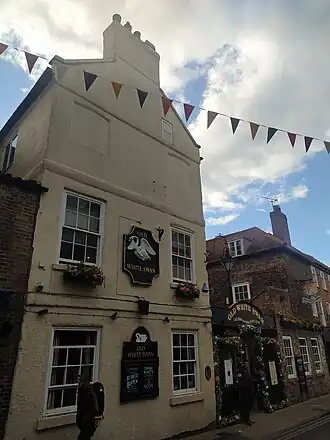 The Old White Swan is a pub in the city centre of York, in England. The core of the building is timber-framed and was constructed in the early-17th century. It lay at the back of a coaching yard on the north-western side of Goodramgate, but with another entrance on Low Petergate. Underneath a glass panel in the floor is part of a Roman column, although this is not its original location.[1]